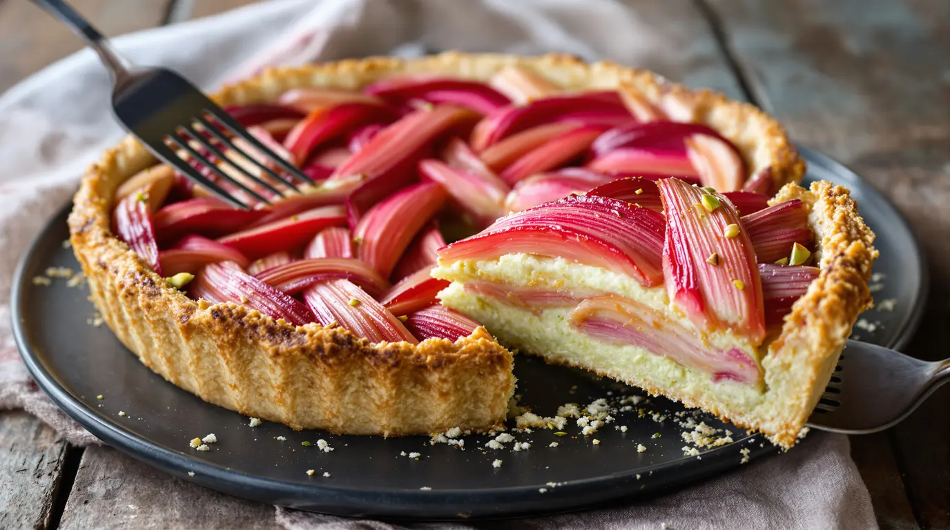 Quand la rhubarbe revient sur les étals, difficile de résister. Son acidité réveille tout, même une journée un peu grise. Et dans cette tarte rhubarbe et pistache, elle ne se contente pas de jouer un second rôle. Elle prend la lumière, avec une élégance presque surprenante.